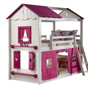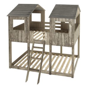 The attached tilted ladder provides easy access to the top bunk.